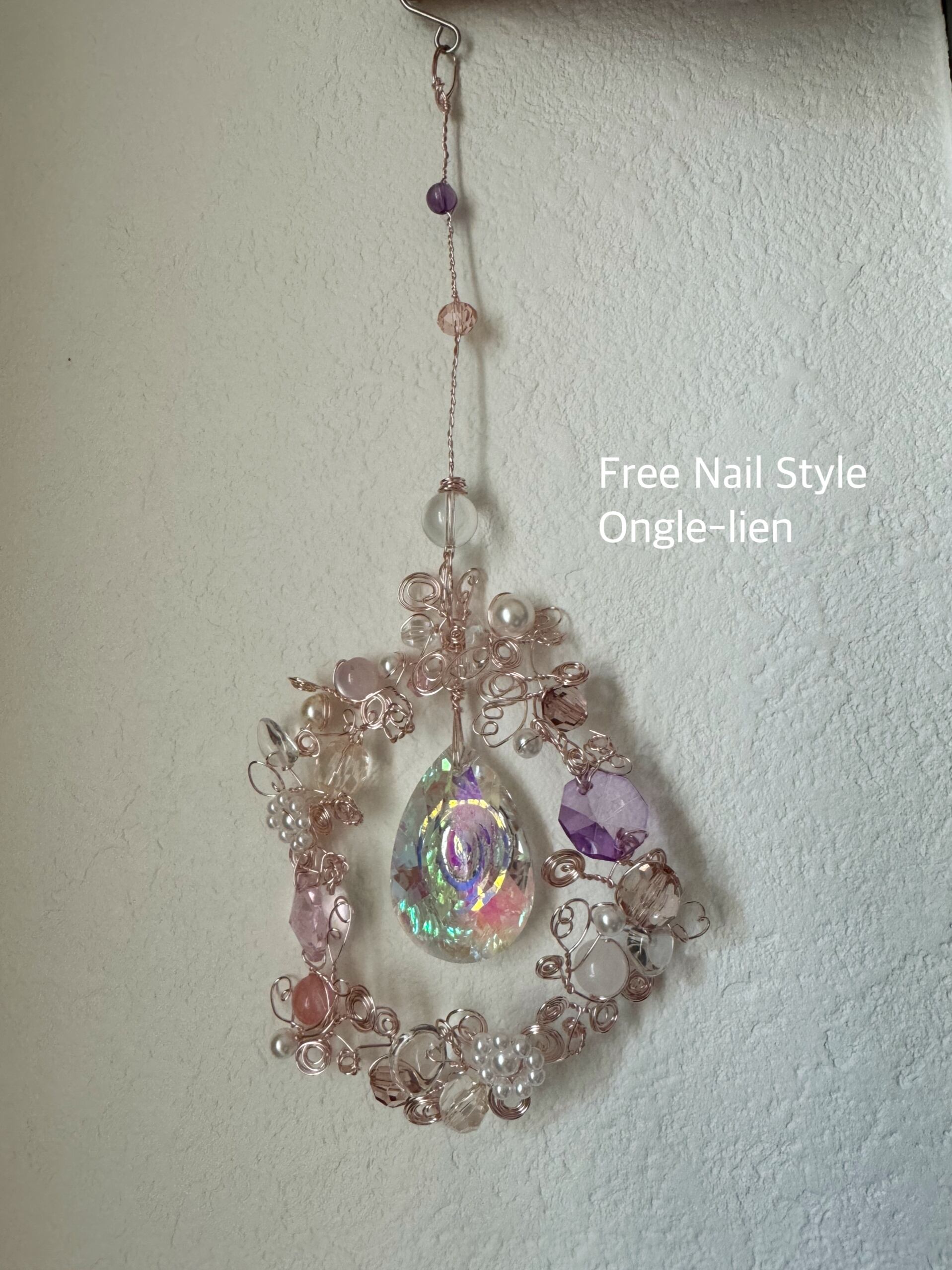 愛にまつわるパワーストーンをたくさん使った見て癒される可愛いピンクのサンキャッチャー✨